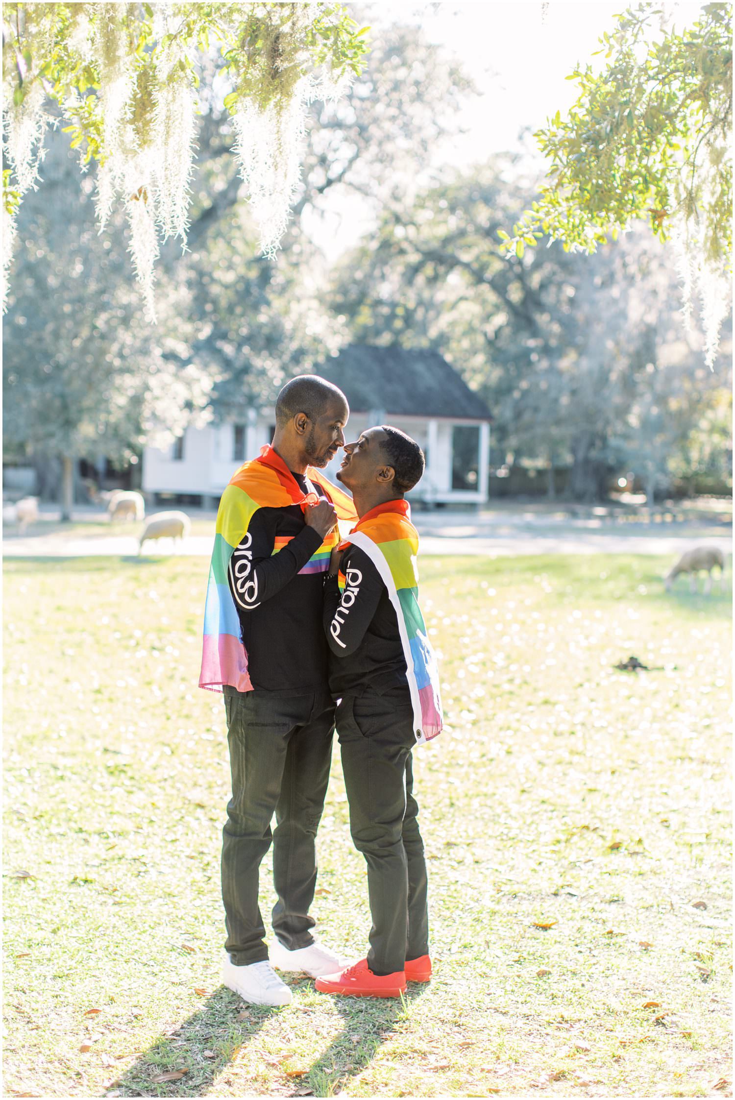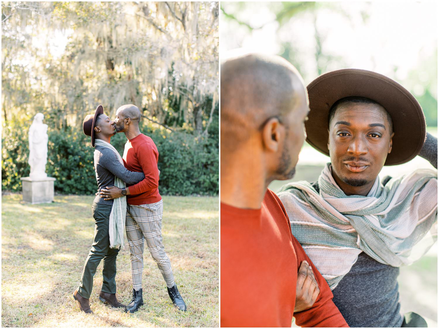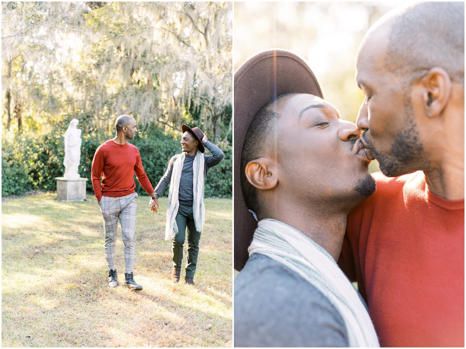 They live in Savannah GA & came up to Charleston for the first time together for their anniversary photos at Middleton Place! Clifton had actually never been to Charleston before. William’s original plan for their photos was to rent a cute Air BnB and have lifestyle “at home” photos but then he emailed me a few weeks before the shoot that he had instead contacted Middleton and set up a shoot there. Of course I gushed about Middleton – we got married there! He even had one of our wedding photos saved as inspiration on his phone and I was like “thats us!!! ^___^”